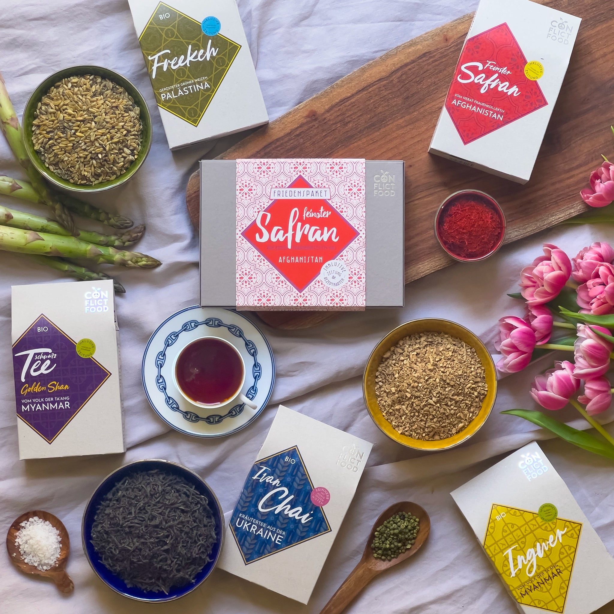 Echter Geschmack, echte Wirkung. Unsere Spezialitäten stammen direkt aus Konfliktregionen – fair, nachhaltig und voller Geschichten. Jedes Produkt bringt intensives Aroma auf deinen Teller und schafft gleichzeitig Chancen für die Menschen, die sie anbauen.