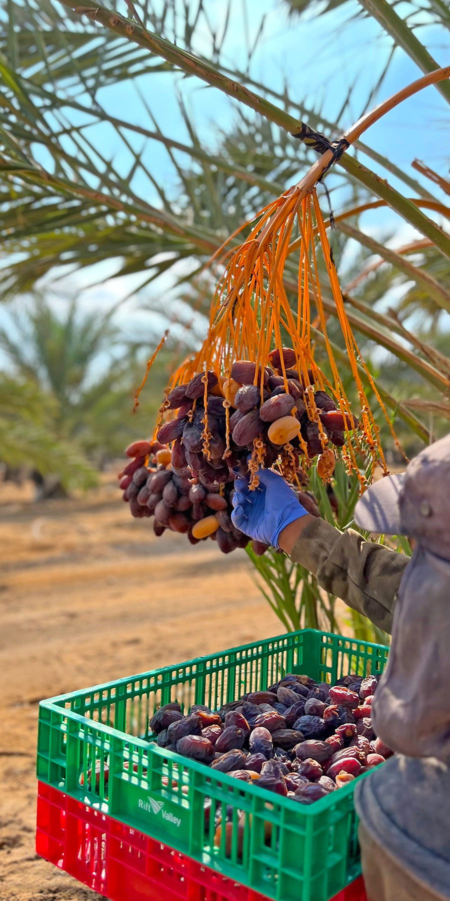 Im Jordantal, wo Sonne und Stille den Rhythmus des Lebens bestimmen, entfalten unsere Medjool-Datteln ihren unvergleichlichen Geschmack. Rund 4.200 Palmen werden nach biologischen Kriterien gepflegt – mit Wissen, Geduld und moderner Technik.